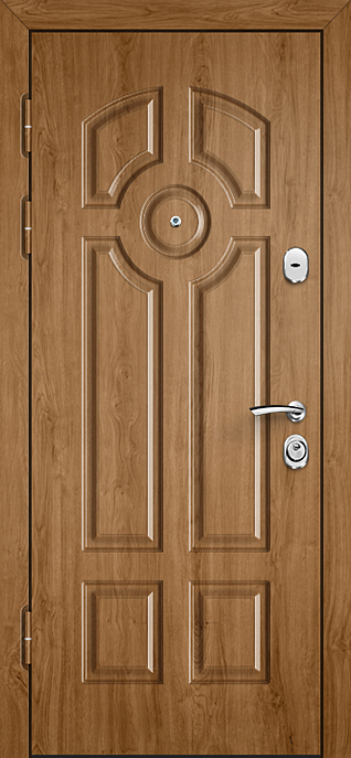 Филёнчатая отделка всегда придаёт дверному полотну особый шарм, создавая эффект глубины и аккуратного рельефа. Входная дверь МДФ с внешней панелью под филёнку №537 универсальна и одинаково хорошо смотрится на фасаде частного дома, в офисе или в квартире. Отделка из МДФ-плиты устойчива к мелким повреждениям, не выгорает и сохраняет аккуратный вид при ежедневной эксплуатации, а при необходимости легко комбинируется с другими декоративными элементами. В основе конструкции — каркас из профильной трубы, лист стали толщиной 2 мм и рёбра жёсткости, обеспечивающие надёжность и жёсткость всей системы. Для удобства и безопасности предусмотрены два замка: сувальдный Просам и цилиндровый Мосрентген. Два контура уплотнения повышают комфорт эксплуатации, а при желании дверь можно дополнить зеркалом, стеклопакетом или коваными вставками, сделав её не только прочной, но и выразительной частью интерьера. Входная дверь МДФ и внешней панелью под филенку №537 от производителя: быстрое изготовление и монтаж в Железнодорожном, индивидуальные размеры, широкий выбор материалов и фурнитуры, официальная гарантия до 10 лет.