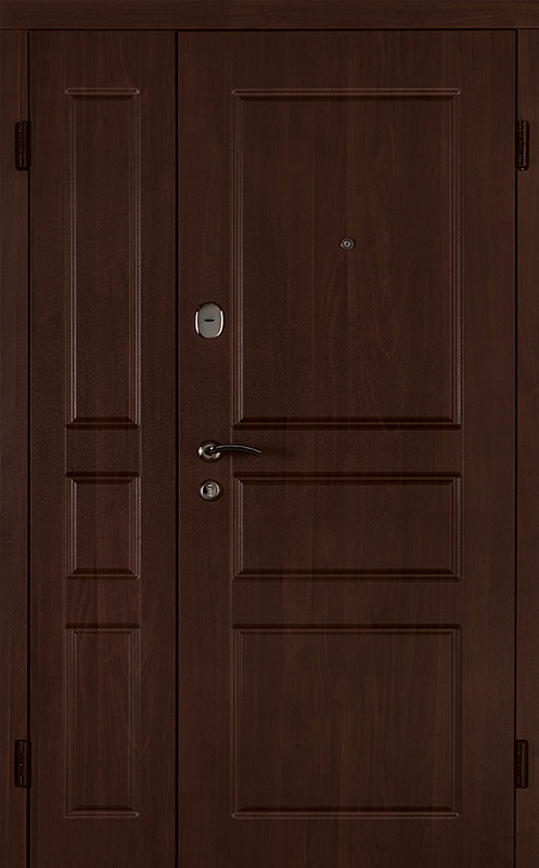 Коричневая входная полуторная дверь с филенчатой створкой №4 – это надежное и стильное решение для вашего дома или офиса. Внешняя и внутренняя отделка из МДФ с ПВХ обеспечивает долговечность и устойчивость к повреждениям, сохраняя при этом элегантный внешний вид. Прочные материалы конструкции, такие как профильная труба 50х25 мм и лист металла толщиной 2 мм, гарантируют стабильность и безопасность. Ребра жесткости из профильных труб 40х25 мм усиливают дверное полотно, а уплотнение с двумя контурами надежно защищает от внешних факторов. Несмотря на отсутствие терморазрыва, в двери реализованы терморазрывы в коробке и полотне, что помогает улучшить теплоизоляцию. Возможность выбора дополнительных опций, таких как шумоизоляция, делает эту дверь универсальной для различных условий эксплуатации. Коричневая входная полуторная дверь с филенчатой створкой №4 от производителя: быстрое изготовление и монтаж в Железнодорожном, индивидуальные размеры, широкий выбор материалов и фурнитуры, официальная гарантия до 10 лет.